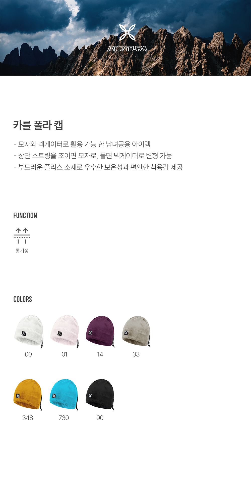 - 상단 스트링을 조이면 모자로, 풀면 넥게이터로 변형 가능