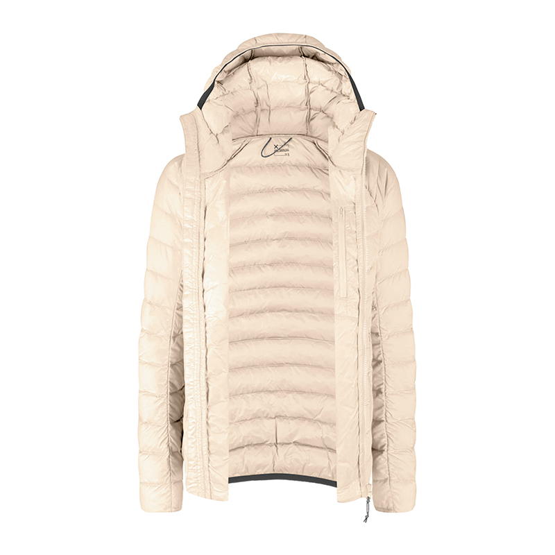 - 충전재는 90% Moulard “Pure White” 덕다운과 10% 화이트 덕다운 페더로 구성되었으며, *750 필파워(IDFB 스팀 테스트 기준)*의 우수한 보온력을 제공