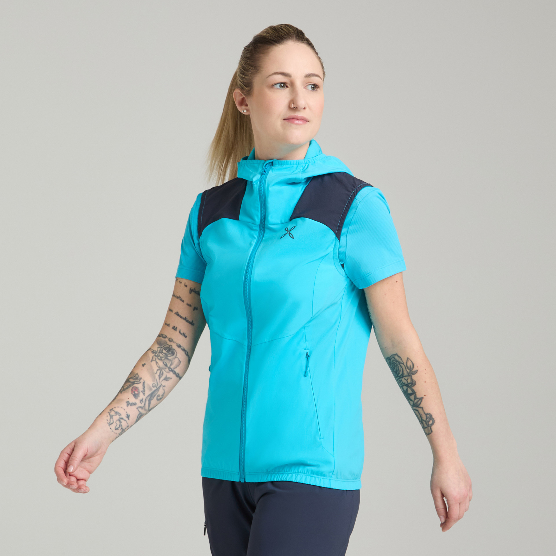 - 신축성이 우수한 후드, 소맷단은 몸에 꼭 맞게 밀착되어 찬공기의 유입 방지